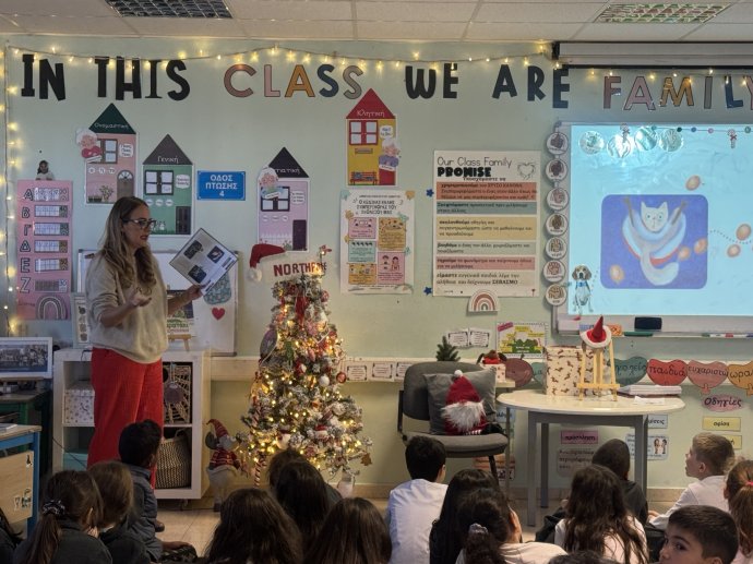 Η βραβευμένη συγγραφέας Δέσποινα Ηρακλέους επισκέφθηκε χριστουγεννιάτικα το σχολείο μας, μαζί με την "Πουπέτ - η γάτα που μισούσε τα Χριστούγεννα" χαρίζοντας ξεχωριστές φιλαναγνωστικές στιγμές στα παιδιά των Β' και Γ' τάξεων.