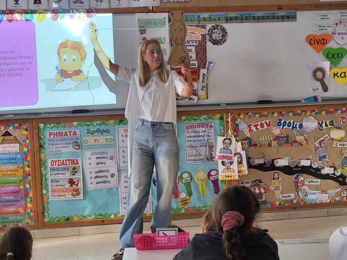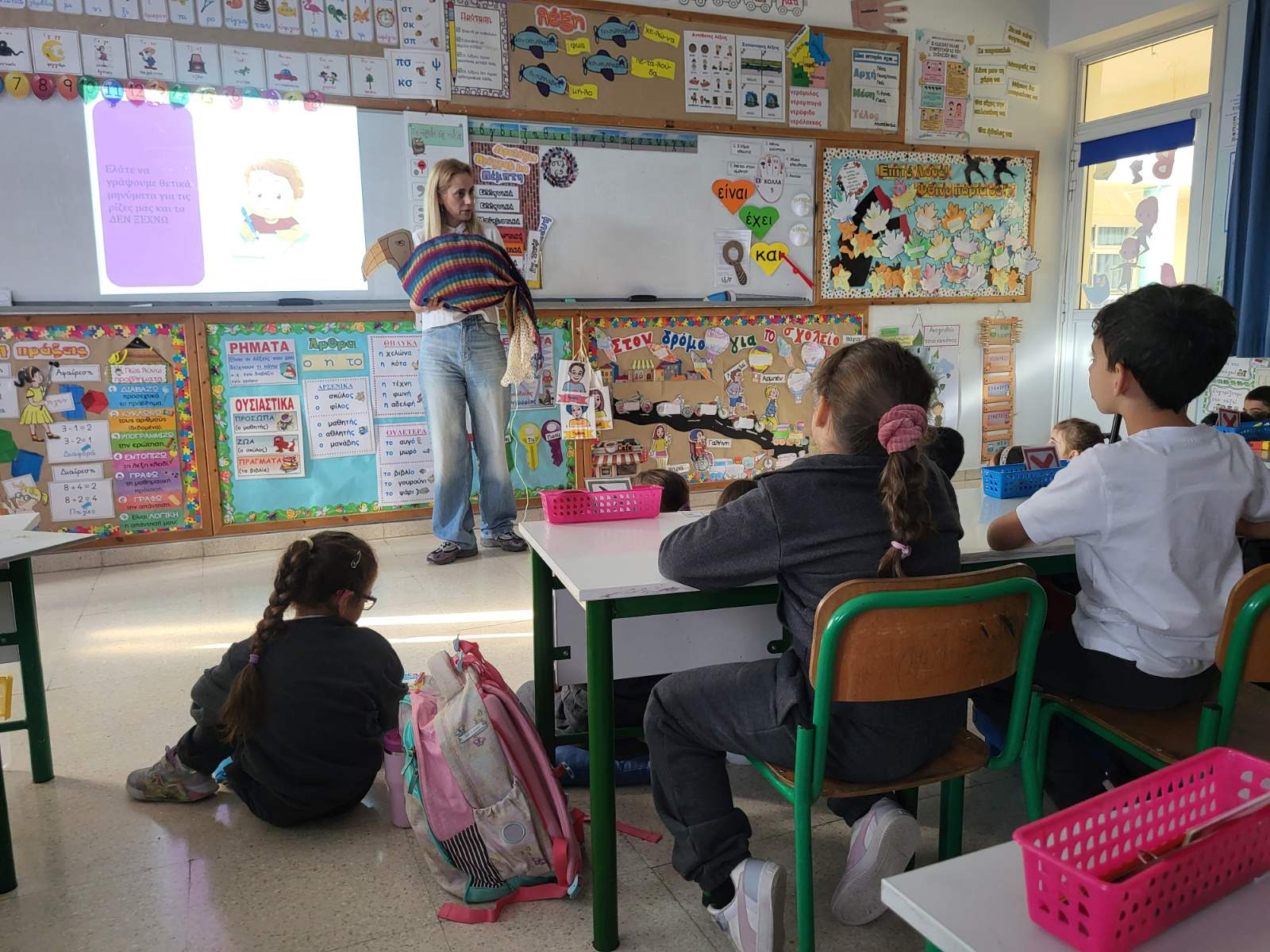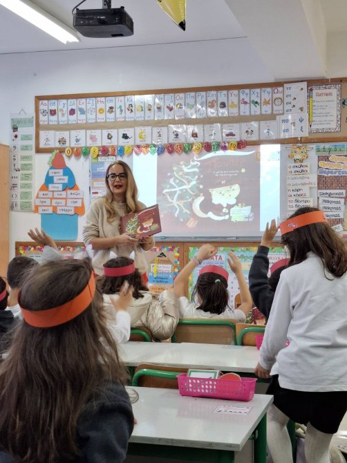 Η συγγραφέας και εικονογράφος Μύρια Μουρίδου Μαραγκού επισκέφθηκε το σχολείο μας και μίλησε για τις Ρίζες μας. Μέσα από την αφήγηση του παραμύθιου της, μετέδωσε στα παιδιά μηνύματα για την αξία της ενσυναίσθησης και προώθησε το μήνυμα της επιστροφής στις πατρογονικές μας εστίες και της επανένωσης του τόπου μας.