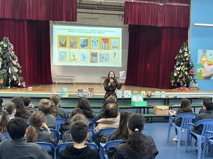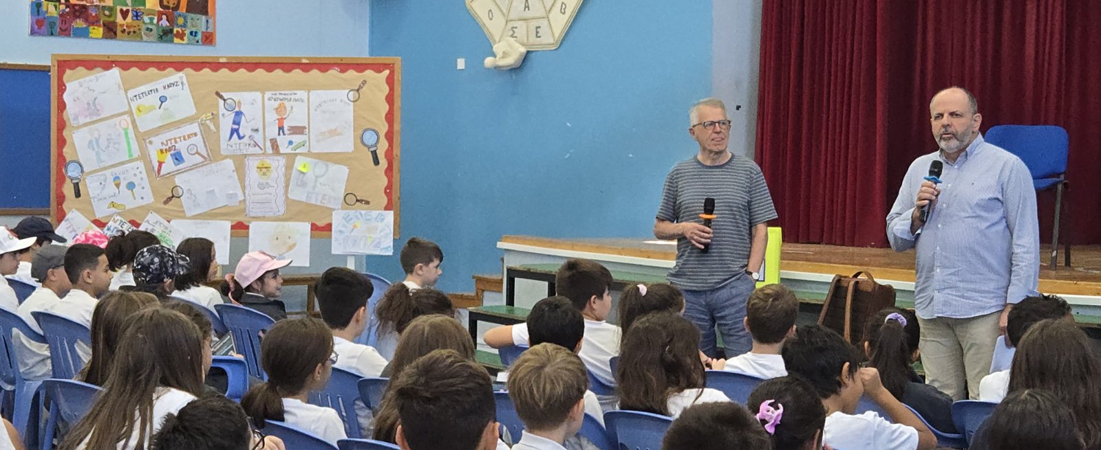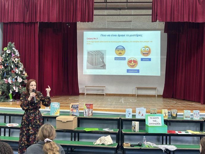 Η διακεκριμένη συγγραφέας Δήμητρα Χαραλάμπους πρόσφερε ένα απολαυστικό φιλαναγνωστικό εργαστήρι στα παιδιά της Ε' τάξης με θέμα το τελευταίο της βιβλίο «Μυστήριο στη Μεσόγειο».